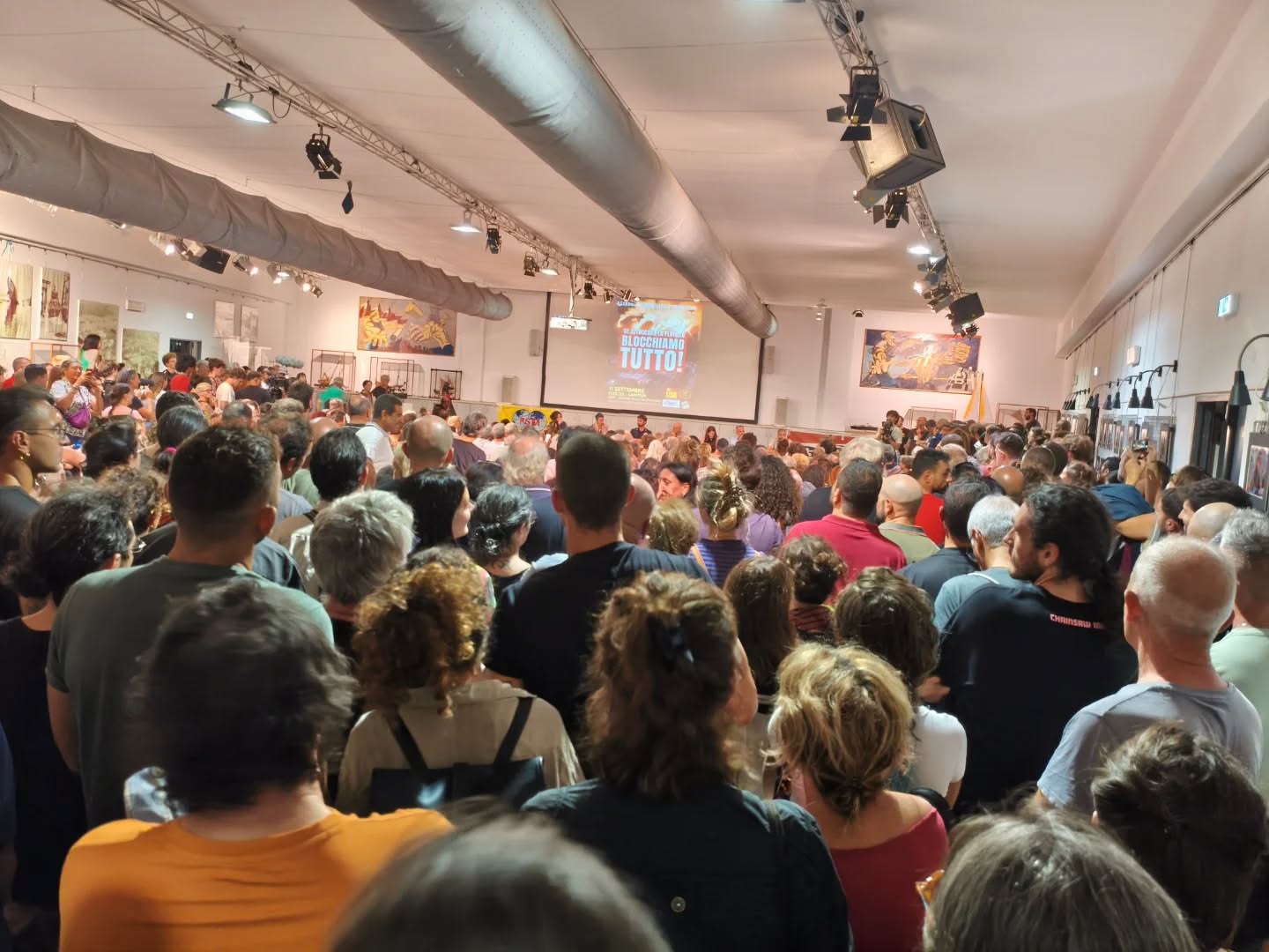 C’erano centinaia di persone ieri sera all’assemblea nella sala del porto, tanto che si è dovuta mettere dell’amplificazione anche all’esterno. Clicca QUI per vedere il video dell’assemblea.