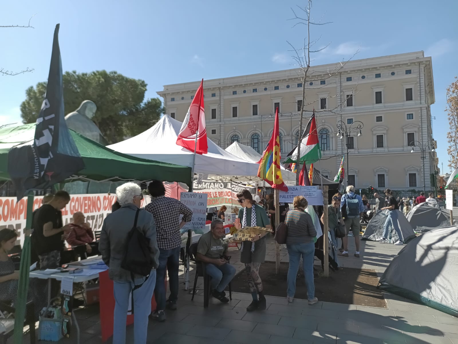 A Roma, piazza dei Cinquecento, che ha visto l’oceanica manifestazione del 22 settembre bloccare di fatto la Stazione termini, è diventata Piazza Gaza ospitando il presidio permanente che ha avviato moltissime attività di informazione sulla Palestina.