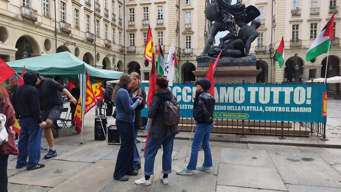 Anche Torino ha trasformato Piazza Palazzo di città in Piazza Gaza. Dopo i cortei e le lotte degli ultimi giorni, con una gestione poliziesca della giusta rabbia e denuncia degli attivisti e dei militanti, le attività continuano. E giusto ieri, tra le attività, c’è stato anche il blocco del Consiglio Comunale, per chiedere la rottura degli accordi con Israele, l’apertura di corridoi umanitari verso Gaza e il sostegno alla Global Sumud Flotilla.