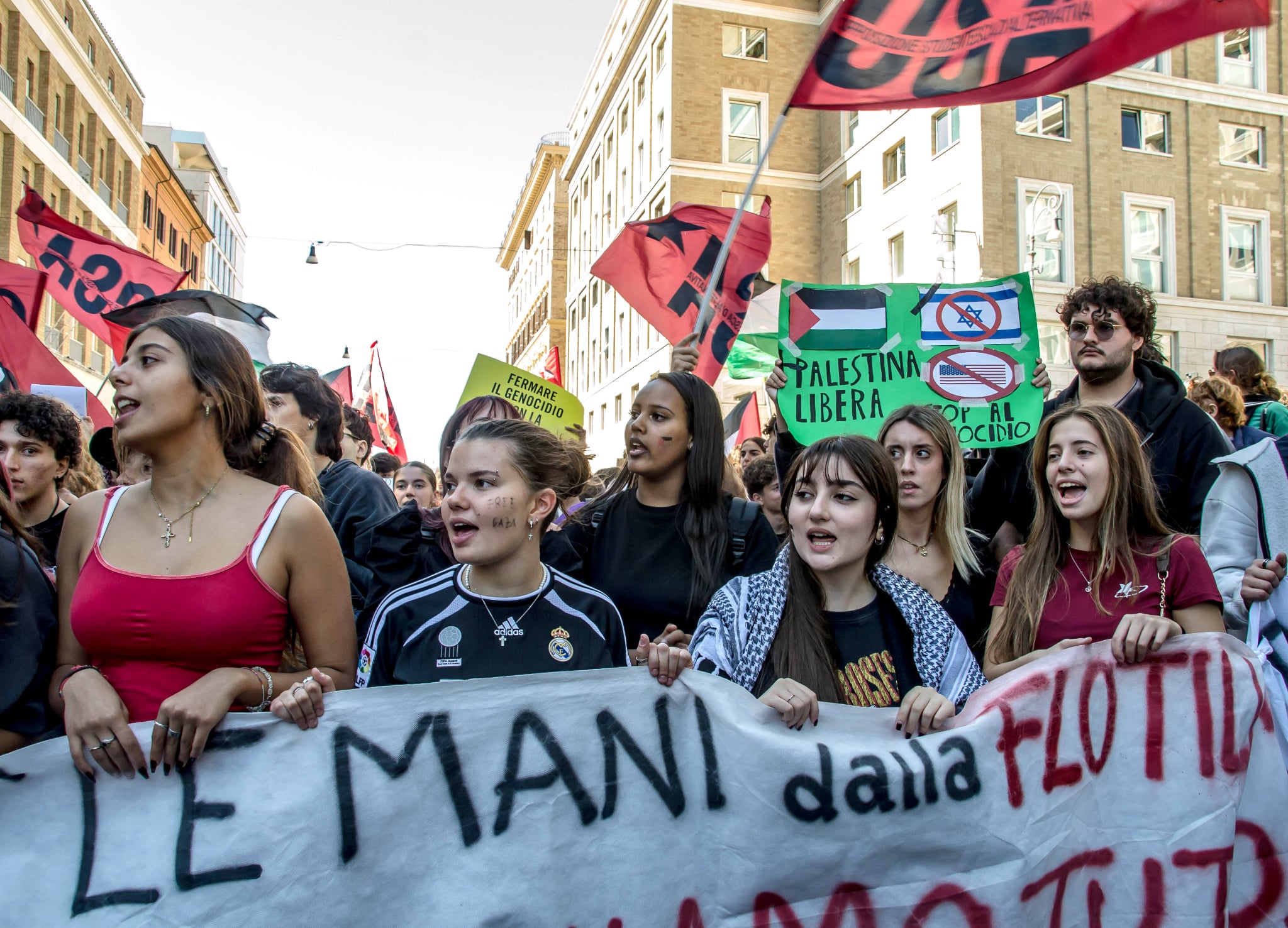 La manifestazione nazionale arriva a conclusione di settimane di mobilitazione popolare di massa in tutte le città all’insegna del “Blocchiamo tutto”, con ben due scioperi generali – il 22 settembre e il 3 ottobre – e quattro giorni consecutive di manifestazioni scattate dopo l’assalto israeliano alla Global Sumud Flotilla. Una mobilitazione che ha palesemente “innervosito” il governo.