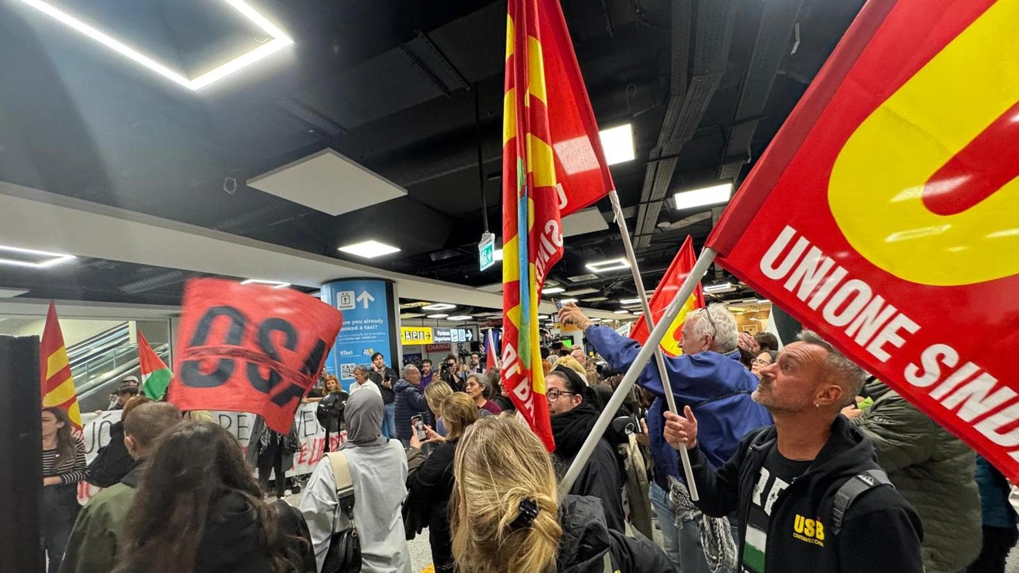 La nostra accoglienza e il nostro calore oggi sono per lui, per tutti gli attivisti di ritorno dalla Flotilla e per i portuali che ogni giorno ci insegnano che i lavoratori possono entrare negli ingranaggi della guerra e del genocidio, fermando il carichi di armi e bloccando il paese con strumenti fondamentali come lo sciopero generale.