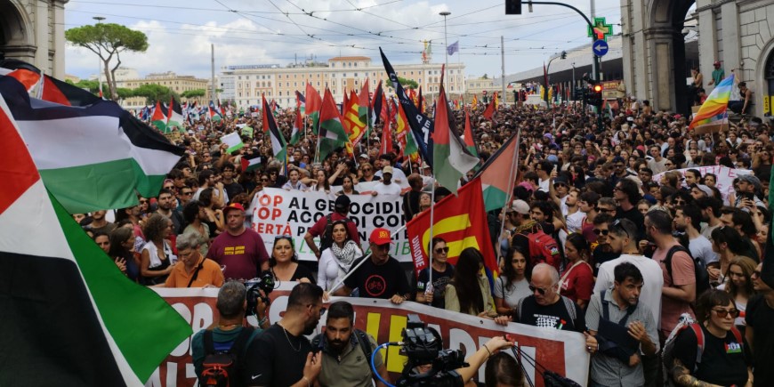 Questa volta lo sciopero generale dei lavoratori è la scintilla che dà inizio alla lotta contro la guerra. Nella storia del movimento operaio internazionale, la lotta per la pace si è sempre svolta prima o dopo una guerra mondiale. A quel tempo, il movimento sindacale si batteva per la pace. Di recente non abbiamo avuto un esempio simile. Per questo motivo, riteniamo molto importante in Italia che i lavoratori assumano la guida della lotta contro la guerra.