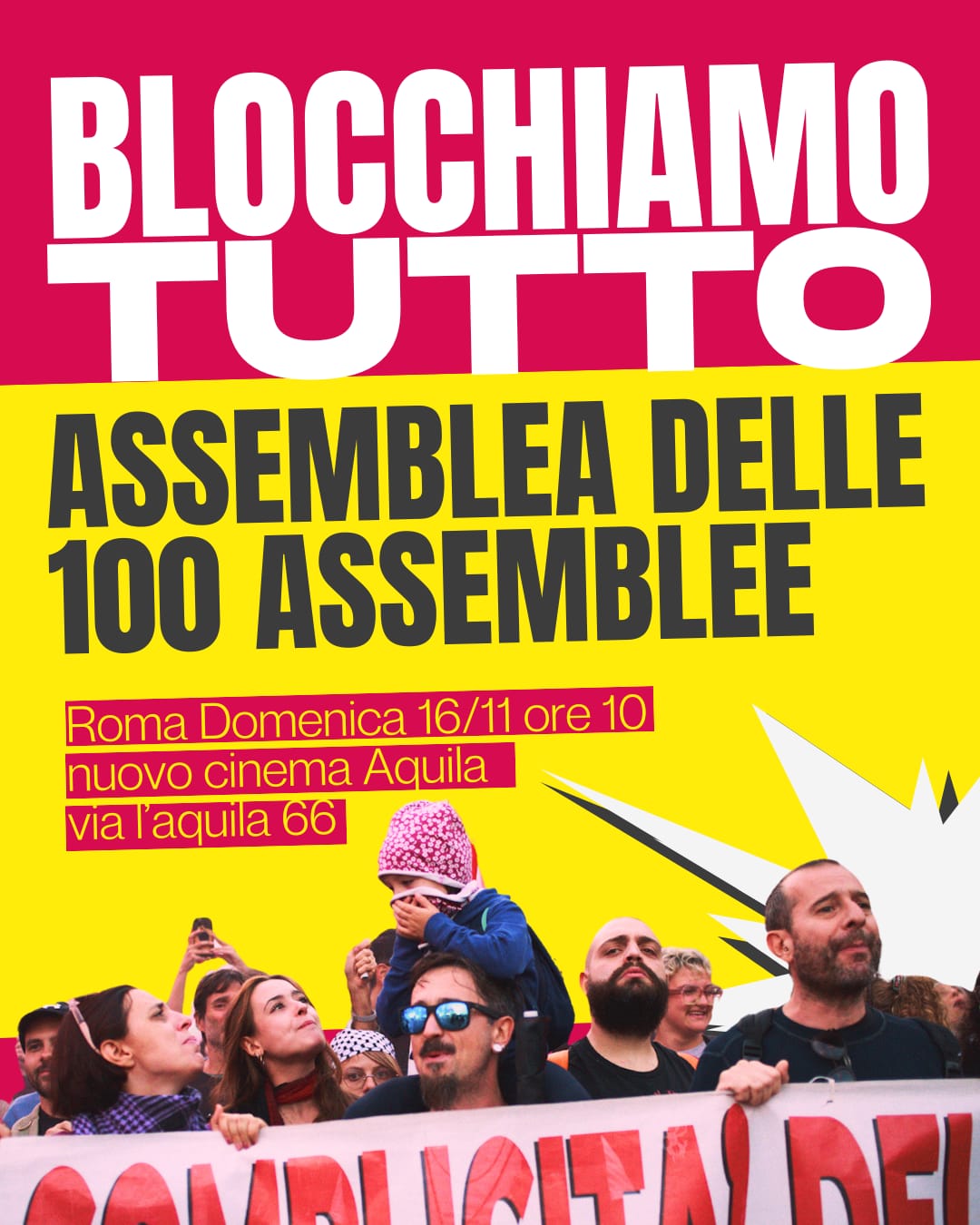 A tale scopo è stato convocato per domenica 16 novembre a Roma un primo grande momento di confronto tra tutte le realtà che hanno dato vita allo straordinario movimento che si è manifestato attorno alla parola d’ordine “blocchiamo tutto”. In agenda si profilano già due nuovi appuntamenti di mobilitazione importanti: lo sciopero generale del 28 novembre e la manifestazione nazionale a Roma del 29 novembre.