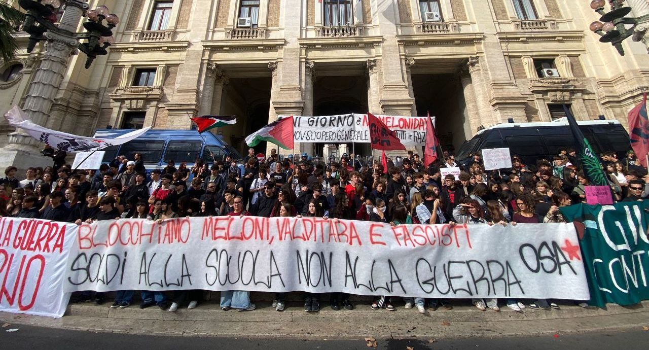 Ieri, infatti, nelle piazze in tutta Italia si potevano vedere cartelli e striscioni di tutti i tipi, ma con un’idea chiara: che serve far crescere l’opposizione al governo Meloni, e ribaltare questo sistema per costruire una formazione nuova in un mondo nuovo. Questa lotta parte dalla prossima finanziaria, una finanziaria di guerra che ignora completamente le esigenze di scuole e atenei.