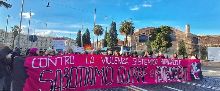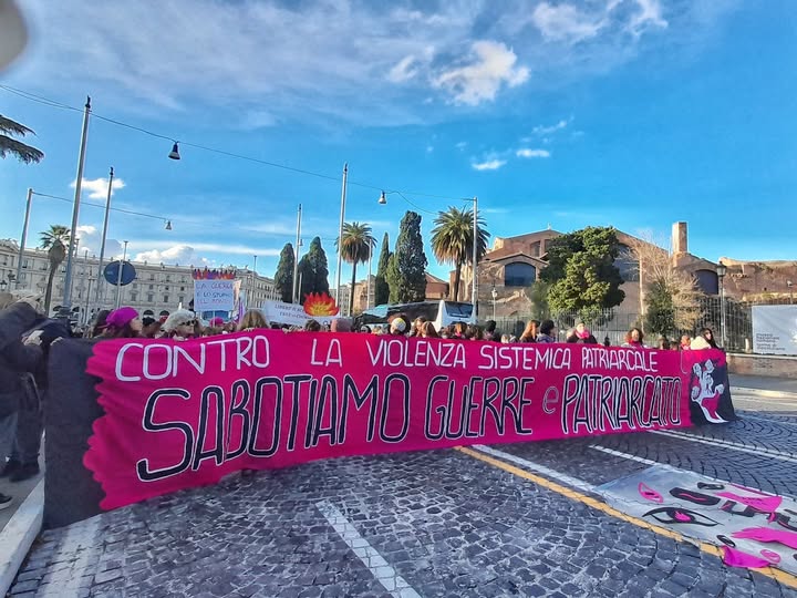 “Sabotare guerra e patriarcato”, è lo stato lo slogan della mobilitazione nella Capitale, che sarà seguita dalle manifestazioni previste nei territori per martedì 25 novembre, la Giornata Mondiale contro la violenza sulle donne.