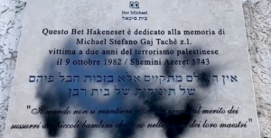 Se l’imbrattamento della lapide dedicata al bambino ebreo Stefano Tachè ucciso nel 1982 è chiaramente inaccettabile (i morti vanno lasciati in pace, sempre), la scritta “Monteverde antisionista e antifascista” appare dunque del tutto pertinente al contesto di quanto avvenuto il 3 ottobre scorso.