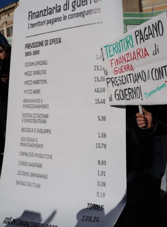 La finanziaria di guerra, infatti, è solo l’apogeo delle politiche di disinvestimento – portate avanti da governi di ogni colore – nei territori, nella sanità, nell’istruzione, a vantaggio della “difesa”, dell’high-tech, delle grandi infrastrutture strategiche, ovvero quei settori in cui si gioca il ruolo dell’Italia nel blocco atlantico, e dell’UE nella competizione globale.