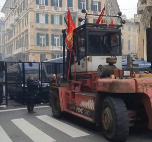 La polizia ha lanciato dei lacrimogeni verso gli operai che hanno tentato di sradicare con dei cavi legati a uno dei mezzi da lavoro della fabbrica la grata montata questa mattina dalla polizia. I manifestanti hanno acceso dei fumogeni lanciando slogan come “Vogliamo lavorare, ci dovete arrestare” e “Urso bugiardo, sei solo un codardo”. Uova e bottiglie sono state lanciate contro i muri della prefettura. I lacrimogeni sono arrivati anche in Piazza Corvetto dove c’era il resto del corteo operaio. Gli operai nel corso della protesta hanno bloccato anche due banchine della stazione ferroviaria di Brignole.