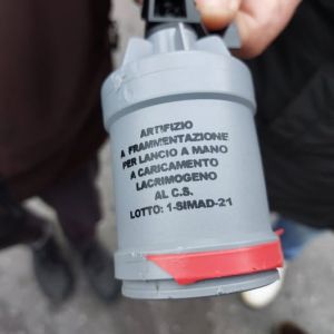 Nella foto qui sotto uno degli ordigni lacrimogeni usati contro gli operai