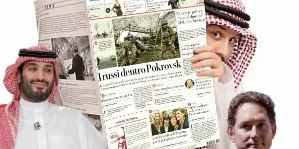 A Repubblica e La Stampa i giornalisti protestano e sono in sciopero perché il gruppo Gedi, di proprietà degli Elkann, ha deciso di vendere le testate di famiglia all’armatore miliardario greco Kyriakou, maggior azionista della holding Antenna, di cui una quota del 30% sarebbe in mano al principe saudita, Mohammed bin Salman Al Sa’ud.