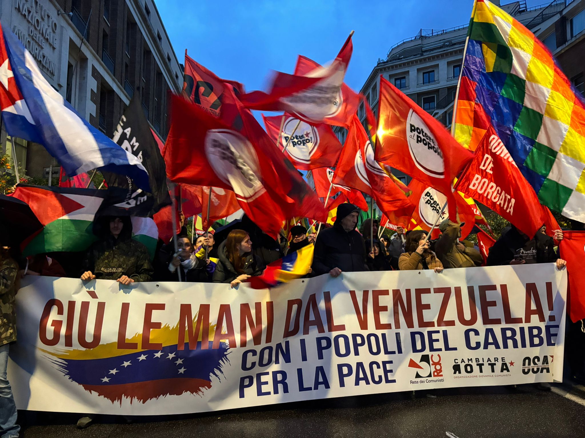 Scendiamo in piazza per dimostrare la nostra solidarietà internazionalista al Venezuela, contro l’imperialismo Usa e i governi, come quello Meloni, che appoggiano il genocidio sionista in Palestina e l’aggressività degli Stati Uniti e il recupero colonialista della dottrina Monroe in America Latina