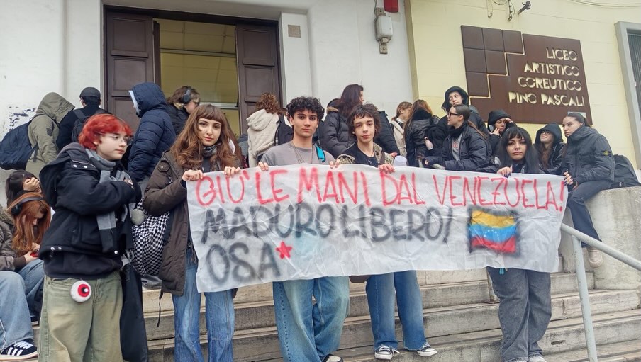 E’ partita immediatamente l’agitazione studentesca nelle scuole per il Venezuela e la liberazione di Maduro con decine di azioni negli istituti di tutta Italia, con buona pace di Valditara e della guerra cognitiva contro i e le giovani per farli arruolare dalla parte dell’imperialismo occidentale.