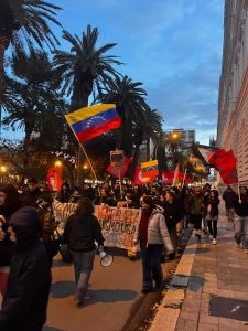 Sotto l’ambasciata USA è intervenuto telefonicamente dal palco anche Nicolasito Maduro, presidente del parlamento venezuelano e figlio del presidente rinchiuso nelle carceri statunitensi (vedi foto a lato).
