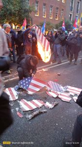 A Roma più di duemila sono partite in corteo da Piazza Esquilino sfilando fino all’ambasciata USA. Su via Bissolati sono state bruciate alcune bandiere degli Stati Uniti.