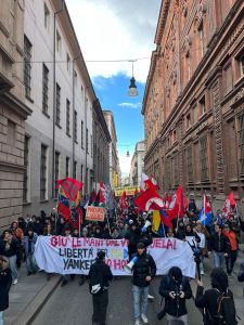 A Milano il corteo è passato davanti alla sede dei palestinesi dell’Abspp recentemente chiusa dalla magistratura nel quadro di una montatura politico/giudiziaria ed è terminato sotto il consolato USA.