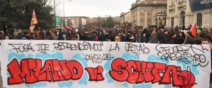 Le ragioni per manifestare e che hanno trovato rappresentazione nella giornata di ieri erano parecchie: la speculazione e la cementificazione selvagge con cui – e per cui – sono state preparate queste Olimpiadi, lasciando in eredità enormi opere e infrastrutture che saranno completamente inutili quando saranno finiti i giochi, se non addirittura non completate per tempo, lo sfruttamento di decine e decine di “volontari” (l’Expo ha fatto scuola), la partecipazione dello stato terrorista e genocida di Israele – a conferma di un insopportabile doppio standard che ha visto, invece, escludere Russia e Bielorussia – la presenza inqualificabile delle squadracce dell’Ice, che il governo ha cercato prima di nascondere e poi di legittimare, normalizzando l’idea dello squadrismo omicida come strumento di controllo dell’ordine pubblico e del dissenso, e, infine, una città completamente militarizzata a definitiva sanzione dei reali caratteri di un evento completamente avulso da chi abita la città e di fatto inaccessibile, logisticamente oltre che economicamente.
