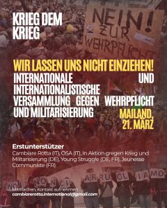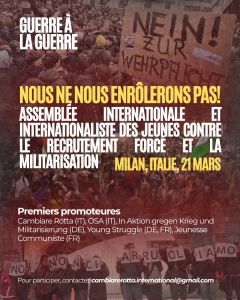 Guerra alla guerra: noi non ci arruoliamo! – Assemblea internazionale e internazionalista dei giovani contro la leva e la militarizzazione. Appuntamento a Milano il 21 marzo.