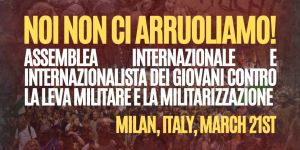 La prospettiva è già delineata, con l’assemblea internazionale e internazionalista contro leva e militarizzazione chiamata per il 21 marzo a Milano da Cambiare Rotta, OSA, AKM, Young Struggle e Jeunesse Communiste, che sarà sicuramente una prossima importante tappa nella costruzione di una risposta coordinata e unitaria alle politiche guerrafondaie di NATO, Unione Europea e governi nazionali, decise a porte chiuse in conferenze come quella di Monaco.