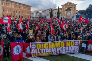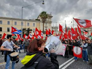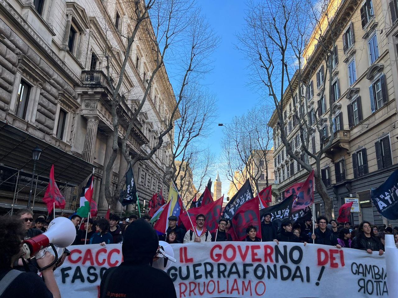 C’erano le lavoratrici e i lavoratori protagonisti degli scioperi di questo autunno, c’erano le famiglie in lotta per il diritto all’abitare, ma soprattutto c’erano tantissime e tantissimi giovani e studenti che hanno chiesto le dimissioni di un Governo sempre più nemico delle fasce popolari, piegato alle politiche belliciste di NATO, UE e USA e che sta condannando a un futuro di guerra, precarietà e sfruttamento. A richiamare l’emergenza della guerra in corso in piazza anche un gruppo di cittadini iraniani. Tante le bandiere palestinesi, cubane e venezuelane.