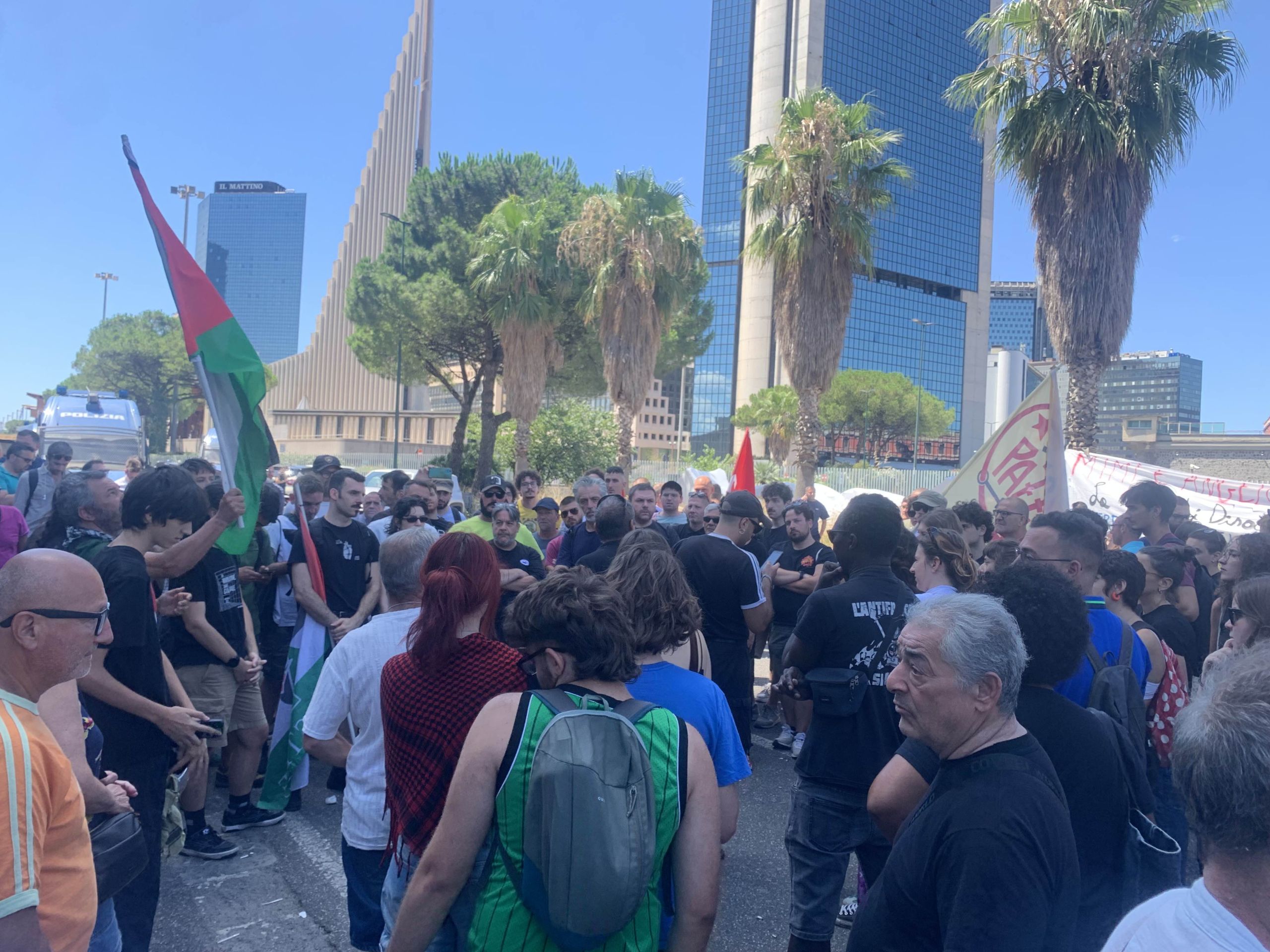 Ci sono anche bandiere palestinesi sventolate da ragazzi e studenti e diversi sindacalisti di altre sigle di base. C’è pure Potere al Popolo con il suo portavoce Granato e diversi centri sociali.