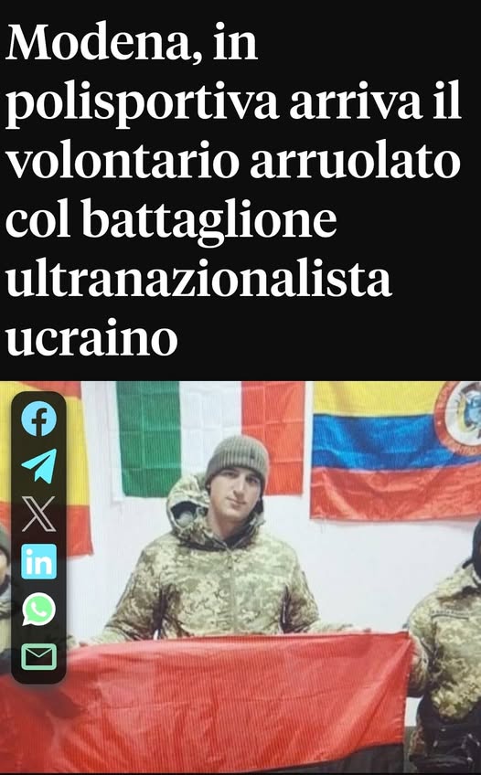 Apprendiamo che in una sala di una polisportiva convenzionata con il Comune di Modena, verrà ospitata venerdì 13 la conferenza di un combattente italiano pro Kiev che risulta arruolato col battaglione ultranazionalista e neonazista Karpaska Sich.