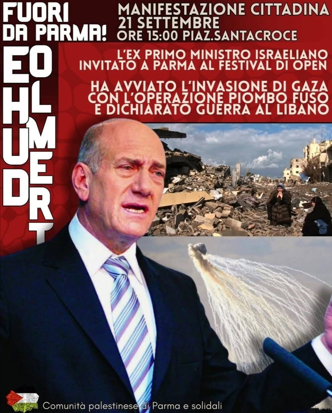 Per questo siamo sgomenti nell’apprendere che al festival di Open, ospitato nella nostra città tra il 19 e il 21 settembre e patrocinato dal Comune di Parma e dalla Università di Parma, sarà riservato spazio ad Ehud Olmert.