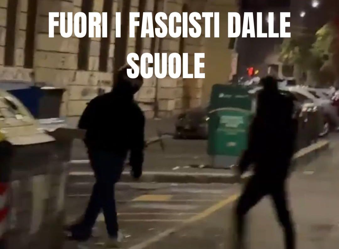 Ieri sera, contro l’occupazione del liceo Righi di Roma, un gruppo di fascisti ha tentato un raid squadrista contro gli studenti e le studentesse nella scuola occupata. Dopo Genova i fascisti riprovano a Roma ad attaccare le lotte degli studenti: questi sono i servi del governo, gli stessi che cantavano i cori a Parma, ratti al soldo di Valditara e Meloni, mandiamo tutta la nostra solidarietà al Righi.