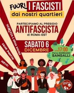 Per questo sabato 6 dicembre alle 17 saremo in strada a Torpignattara (Parco Sangalli) con le altre realtà anti-fasciste del territorio per presidiare il quartiere da chi pensa di risolvere i problemi con la forza.