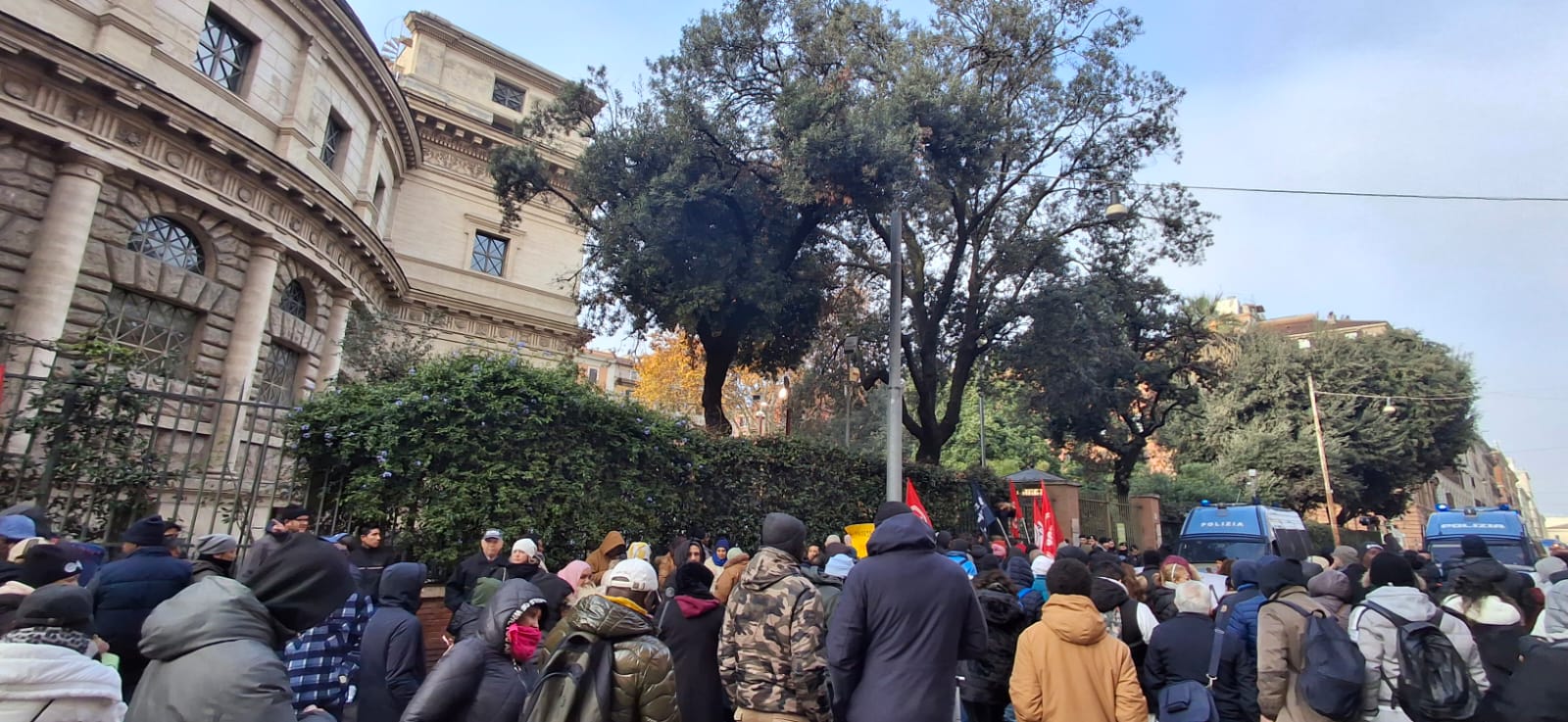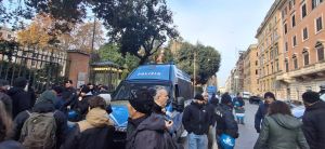 Eppure, mentre la giunta Gualtieri autocelebrava i propri successi sull’abitare dentro una location di prestigio, con figure ritenute evidentemente più qualificate, buffet di lusso e quant’altro, queste stesse persone, oggi, sono state tenute fuori dal convegno “All We Need is Home”. Non solo in quanto non ufficialmente invitate, ma tenute letteralmente a distanza per mezzo di cordoni di forze dell’ordine in tenuta antisommossa e mezzi blindati che hanno bloccato la strada e reso inaccessibile il perimetro della Casa dell’Architettura.