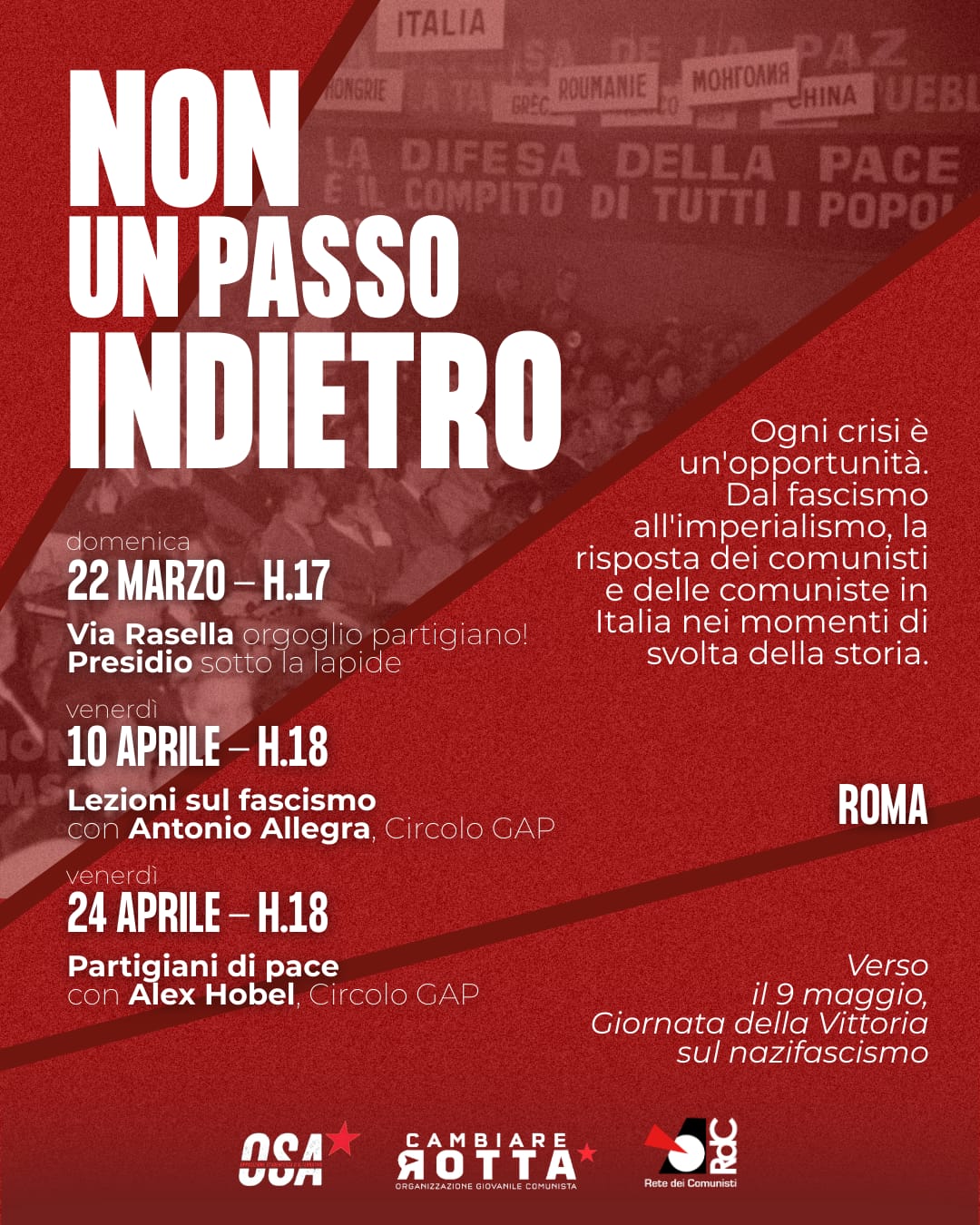 NON UN PASSO INDIETRO. Crisi è opportunità. Dal fascismo all’imperialismo, la risposta dei comunisti e delle comuniste in Italia nei momenti di svolta della storia