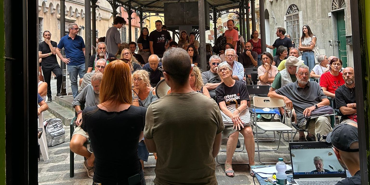 Venerdì sera centinaia di cittadini e cittadine hanno partecipato a una assemblea pubblica a Genova proposta e organizzata dal locale Coordinamento “Disarmiamoli”.