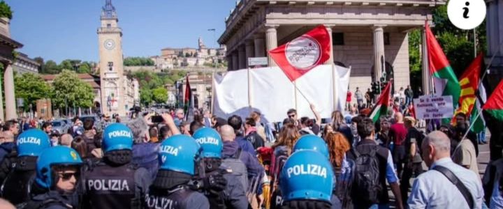 Condanniamo fermamente la repressione della questura di Bergamo e di questo governo neofascista, totalmente in linea con l’adozione delle prerogative dell’ultimo decreto sicurezza. Condanniamo l’inadeguatezza della gestione dell’ordine pubblico, che ha subito un salto di qualità in peggio, osservando quello che è già successo a Milano il 12 aprile. Condanniamo l’arresto di un compagno solidale alla causa. Condanniamo l’inquietante espulsione dalla manifestazione che abbiamo subito. Condanniamo la giunta comunale che appoggia gruppi sionisti e non vuole sentire la voce di chi si oppone al genocidio.