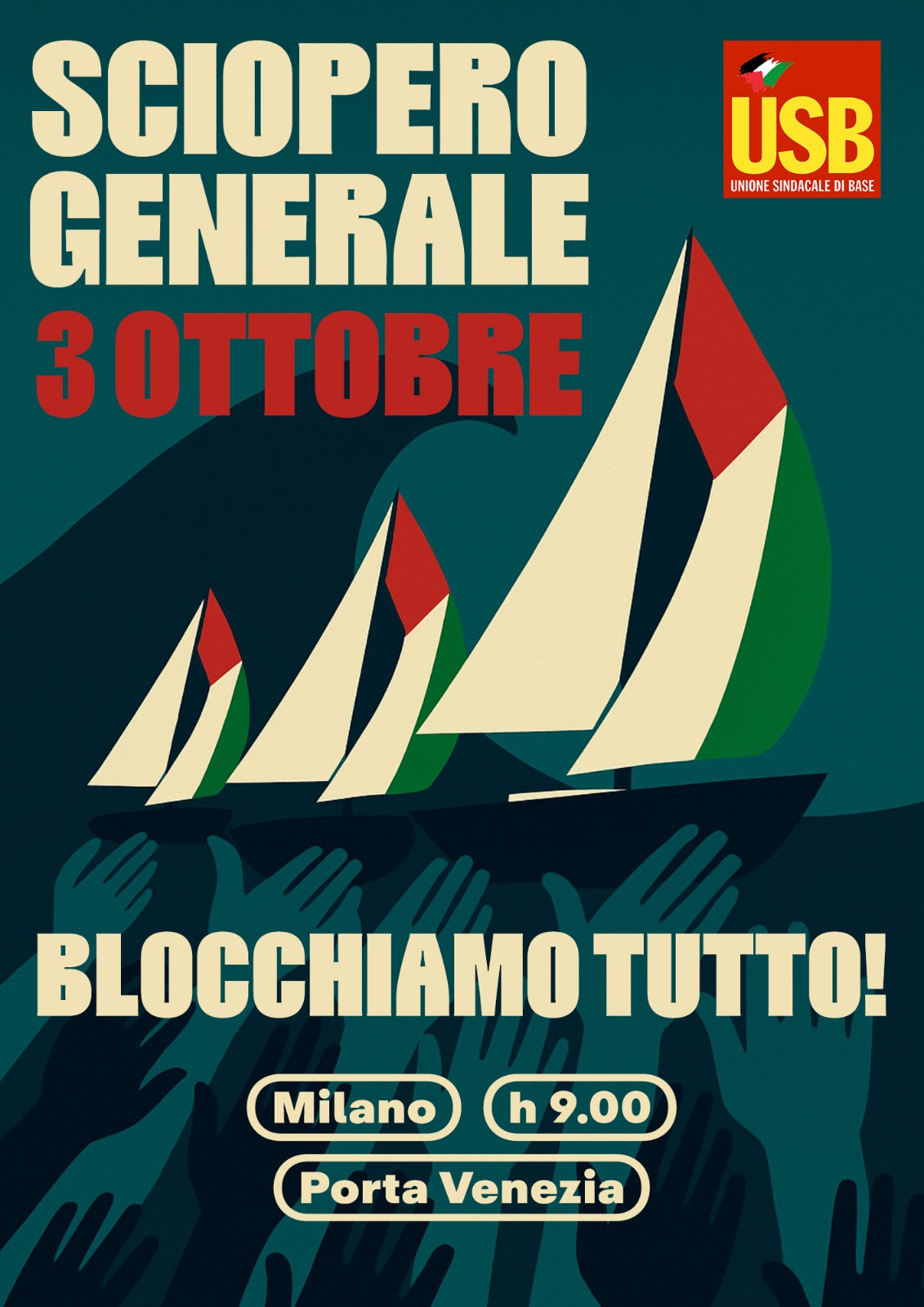 La manifestazione si è conclusa ricordando l’appuntamento per lo sciopero generale del 3 ottobre che partirà da Porta Venezia alle 9.00