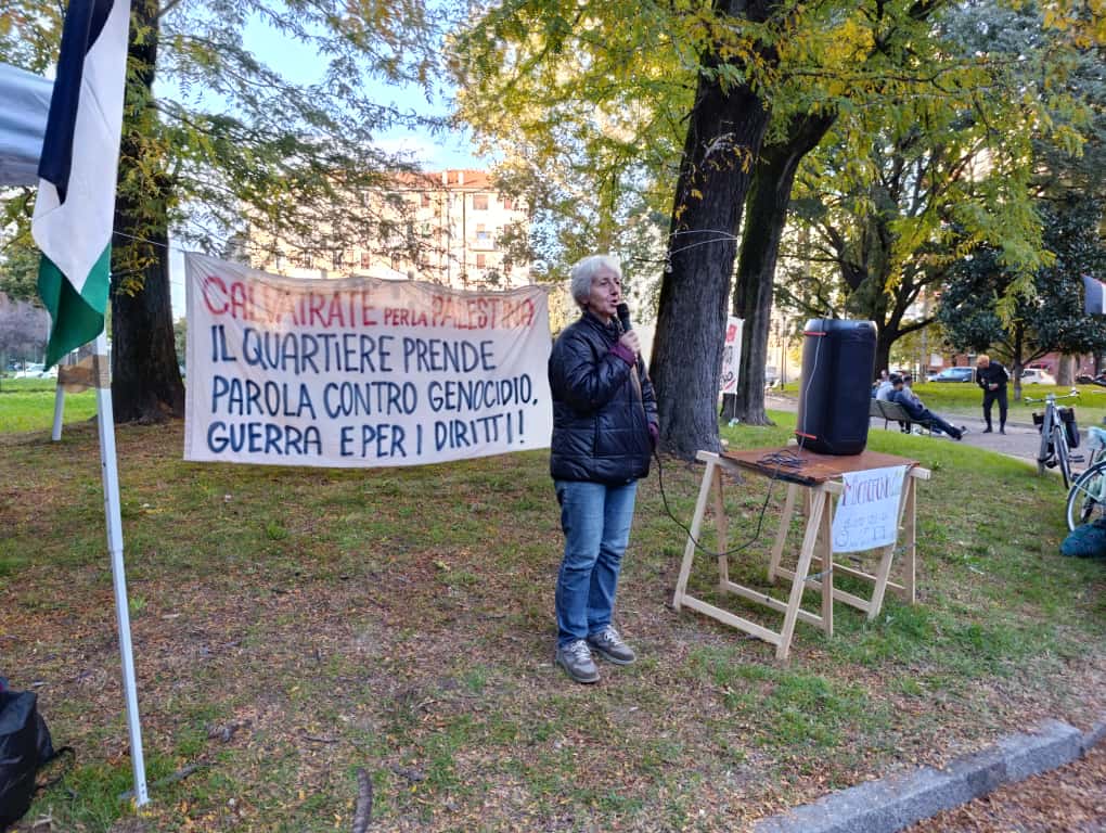 Dal microfono aperto prendono la parola abitanti di Calvairate, rappresentanti peruviani ed ecuadoriani del CIALC (Comité Internacional de América Latina y el Caribe), attivisti del Circolo Arci Spazio Ribelle, delle associazioni Supporto Popolare e Porti Aperti, di Donne contro la guerra e di Potere al Popolo, che rilancia il percorso aperto con le “100 assemblee per Gaza” e denuncia le complicità delle istituzioni col Israele, a partire dalla Giunta Sala.