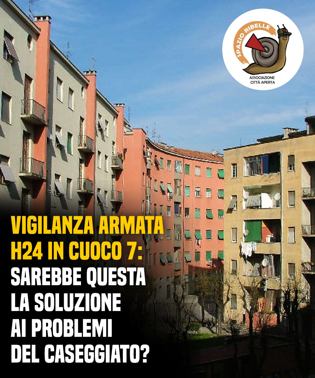 Milano. L’altro ieri, mentre ci recavamo allo Spazio Ribelle per preparare le attività della settimana, abbiamo trovato i locali della portineria del caseggiato di nuovo aperti. Pensavamo che finalmente fosse stato ristabilito il servizio, ma, invece che a un nuovo custode, ci siamo trovati di fronte a un presidio di vigilanza armata privato; siamo venuti a sapere dai giornali essere stato predisposto da Aler nel quadro di un investimento di un milione e 149mila euro stanziato su iniziativa di alcuni consiglieri e assessori del Municipio 4 per un servizio di vigilanza armata diffuso su tutto il quartiere di Calvairate.