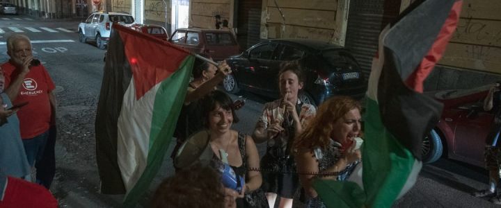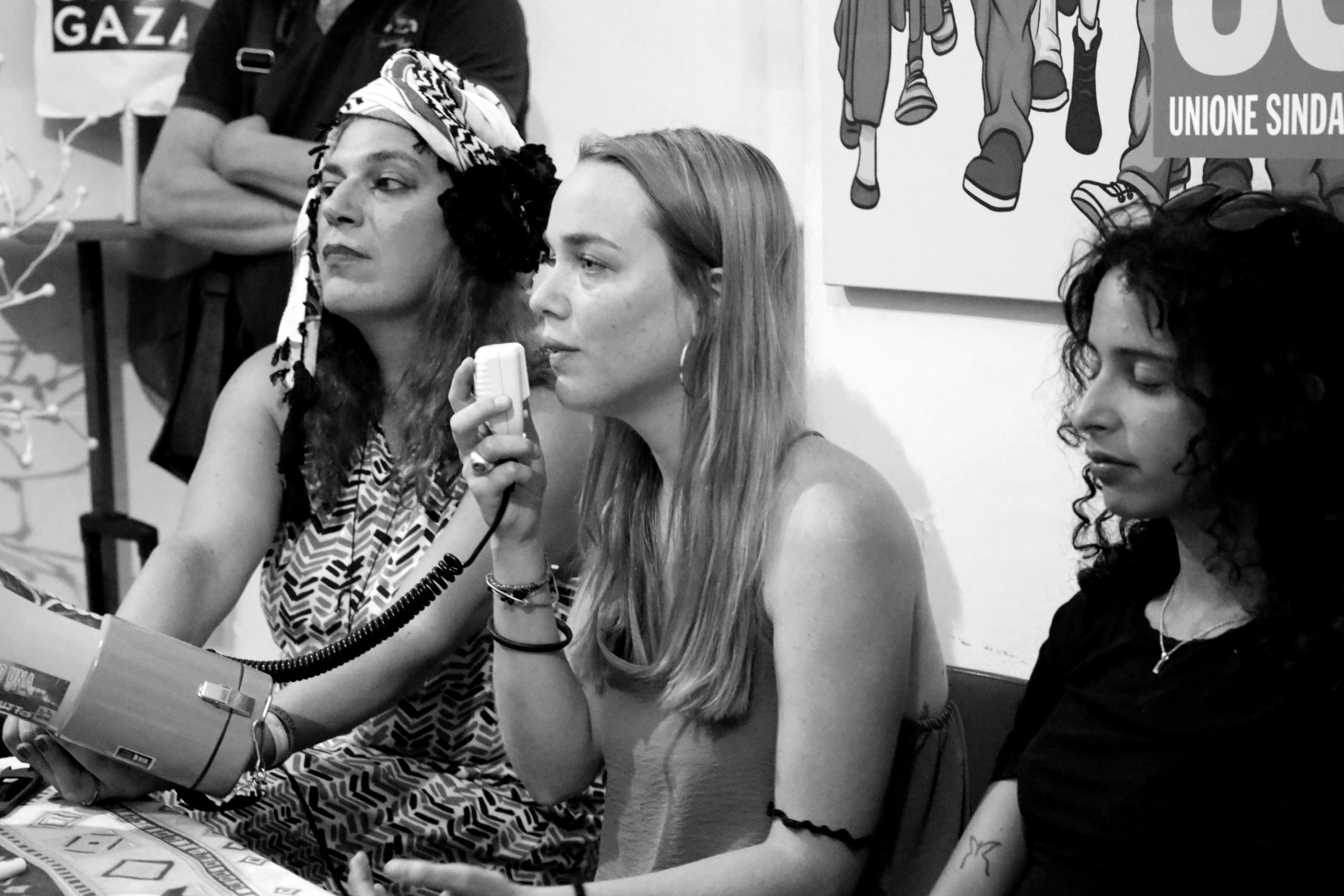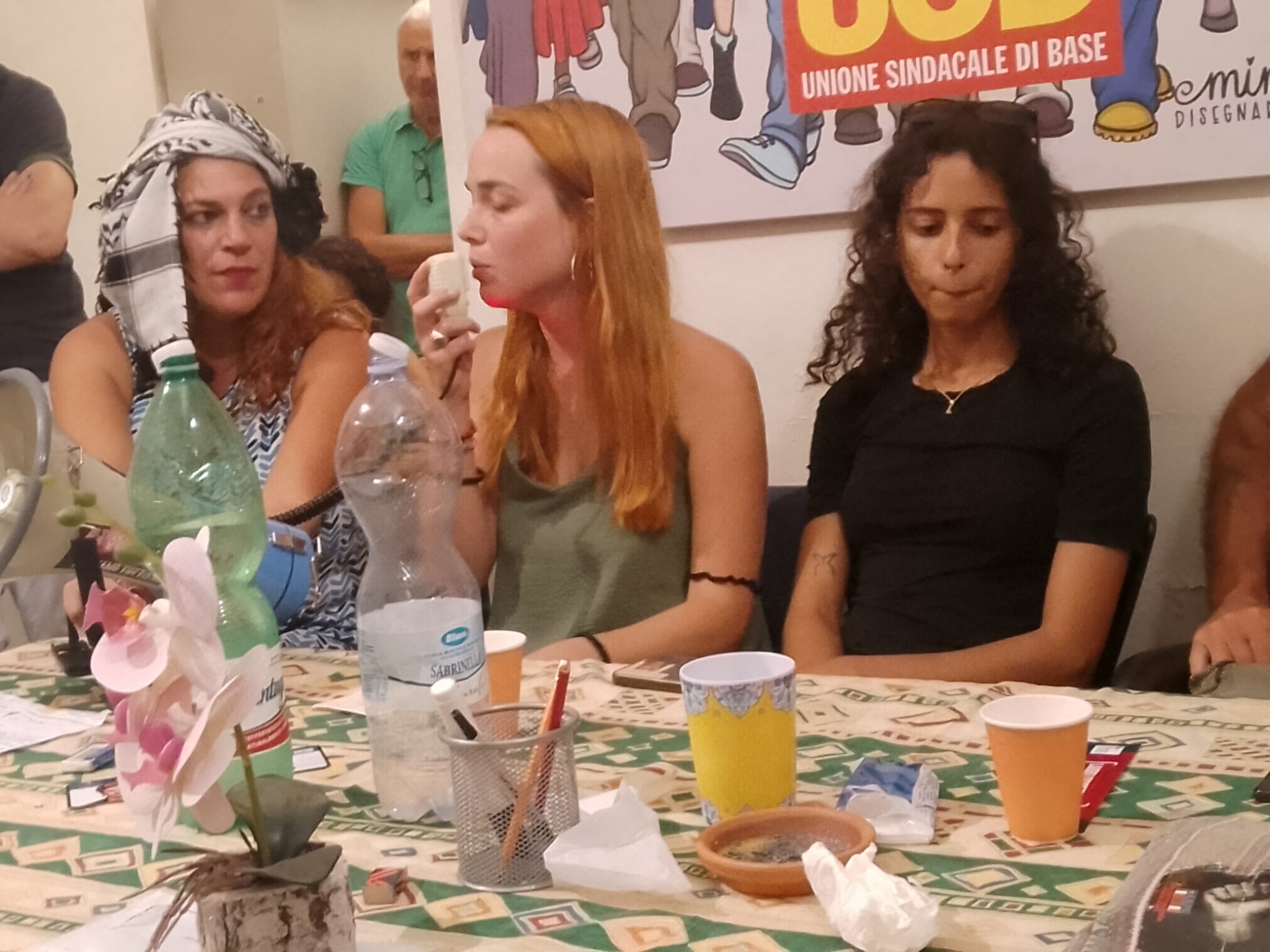 Una serata in cui si sono intrecciate dal vivo le esperienze del blocco delle armi di questi anni dei portuali di Genova, l’incessante lotta del Comitato catanesi solidali col popolo palestinese, l’internazionalismo solidale delle sorelle che si sono già imbarcate per Gaza e il coraggio studentesco che da anni blocca e occupa le Università italiane per chiedere l’interruzione degli accordi con Israele.