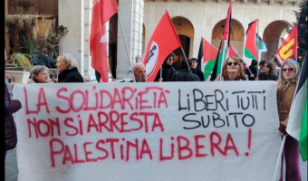 Pisa. Conferenza stampa in piazza contro gli arresti di esponenti palestinesi in Italia