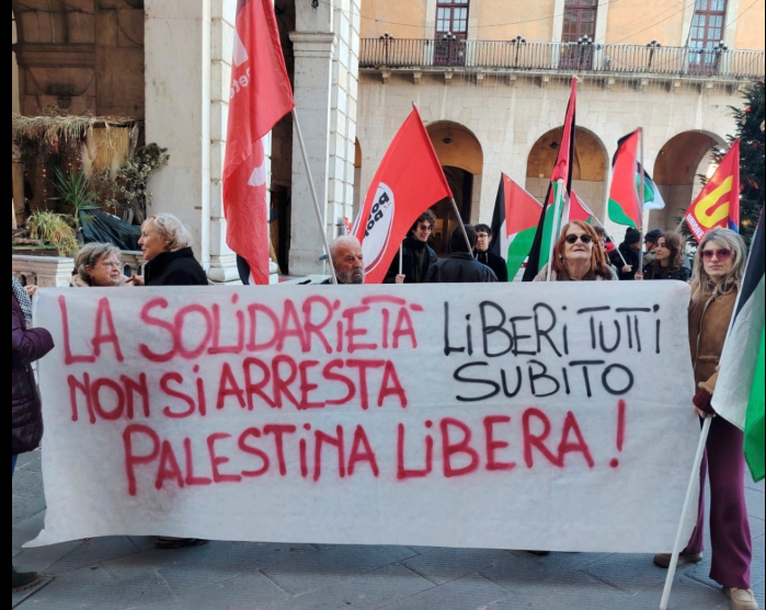 Nonostante il periodo natalizio e pre festivo il presidio / conferenza stampa promosso a Pisa da diverse realtà cittadine ha avuto un riscontro positivo, con la presenza di giovani, studenti, cittadini comuni ed esponenti di altre realtà, a partire dalla comunità palestinese, che ha contribuito con un importante intervento di condanna dell’operazione della magistratura italiana contro esponenti di spicco della ramificata rete di associazioni palestinesi operanti da decine di anni nel nostro paese.