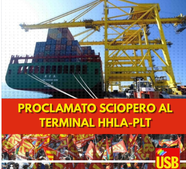 L’USB ha proclamato lo sciopero dei lavoratori operanti presso il terminal HHLA-PLT, con riferimento esclusivo alle attività connesse alla movimentazione del materiale bellico.